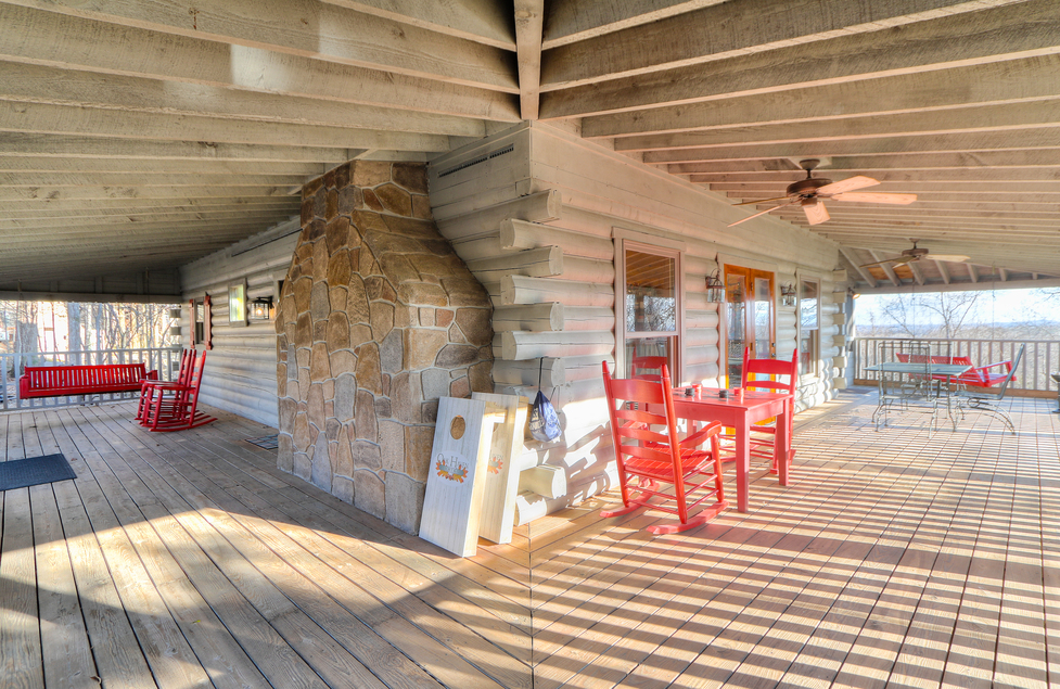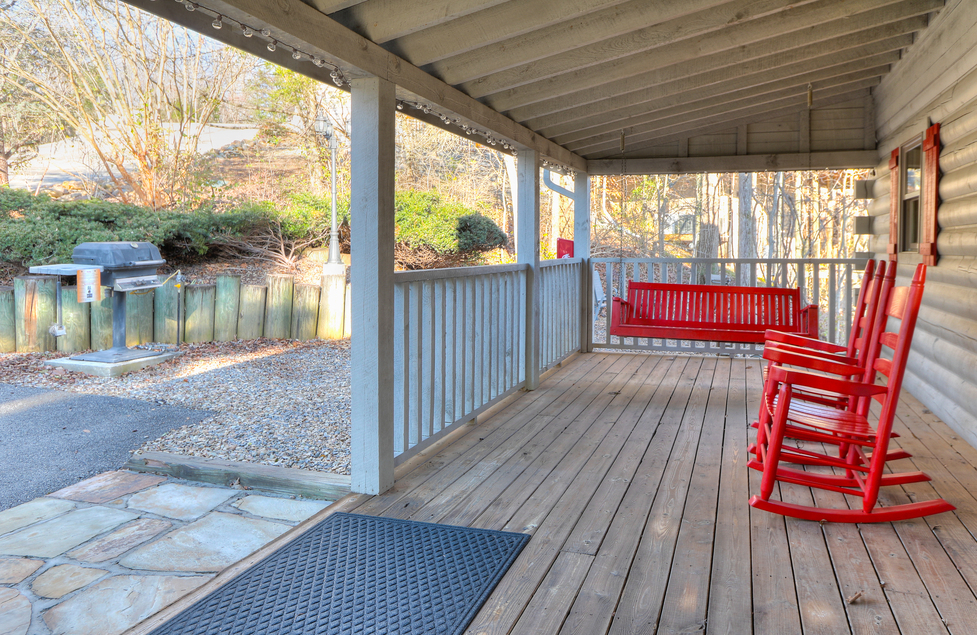 - Side Porch – Swing, Checker Table for 2, 2 Rockers, Corn Hole Game