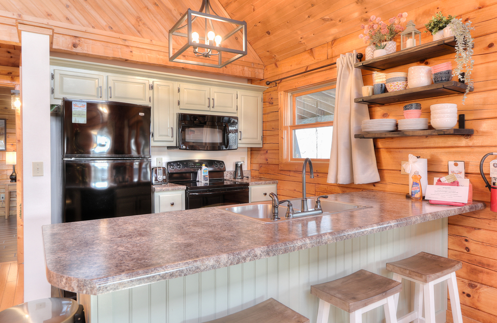- Fully Equipped Kitchen with Side by Side Refrigerator w/Ice Maker, 4 Burner Glass Ceramic Stove Top, Oven, Microwave, Dishwasher