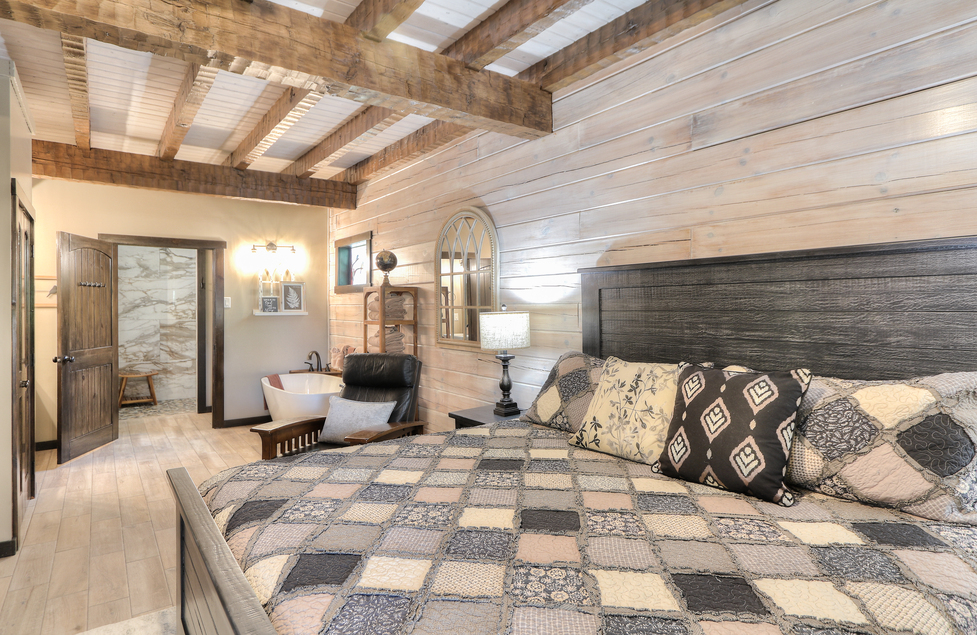 - Bedroom # 7 – King Bed, 32″ TV, Private Bath w/ 60″ Tub Shower Combo