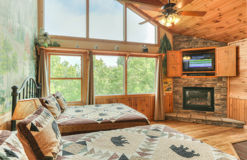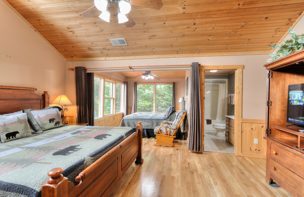 - Bedroom # 4 – King Bed, Queen Bed, Rocker, 36″ TV, Private Bath w/60″ Shower/Tub Combo