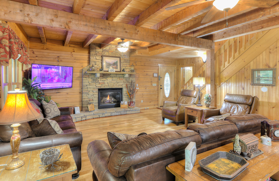 - Living Room – Gas Fireplace, 60” TV, Blu-Ray Player, 2 Sofas, 2 Recliners